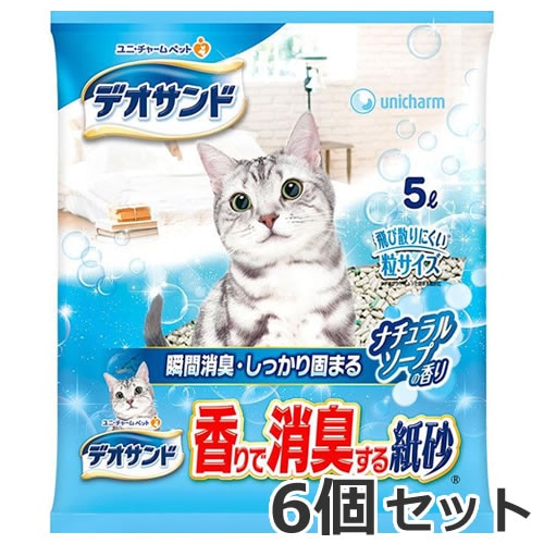 ユニチャーム ペットケア デオサンド 香りで消臭する紙砂 ナチュラルソープの香り 5L×6個セット