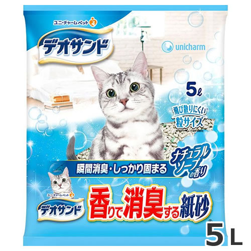 ユニチャーム ペットケア デオサンド 香りで消臭する紙砂 ナチュラルソープの香り 5L※お1人様4個まで