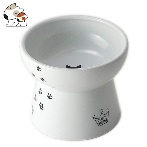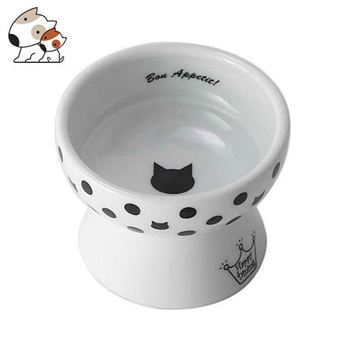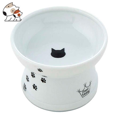 猫壱 ハッピーダイニング 脚付ウォーターボウル ハイタイプ シリコン付き 猫柄 猫用食器