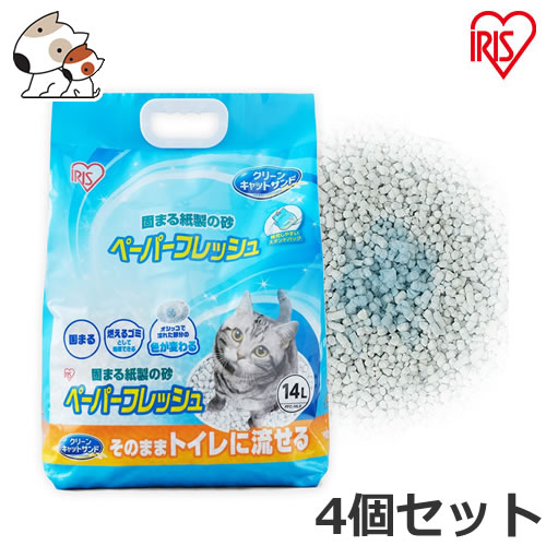 アイリスオーヤマ ペーパーフレッシュ スタンドパック 14L×4個セット 猫砂 トイレに流せる 紙砂 再生パルプ