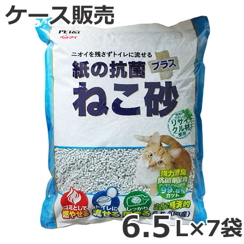 ペットアイ 紙の抗菌プラス猫砂 6.5L×7袋入 ケース販売 紙砂 再生紙 燃やせる 固まる トイレに流せる 消臭抗菌
