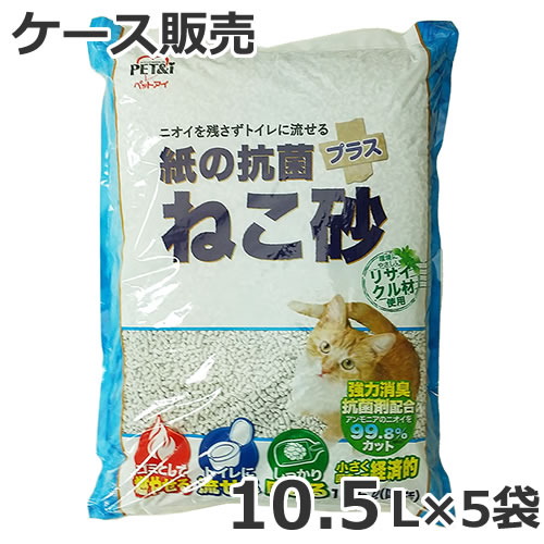 ペットアイ 紙の抗菌プラス猫砂 10.5L×5袋入 ケース販売 紙砂 再生紙 燃やせる 固まる トイレに流せる 消臭抗菌
