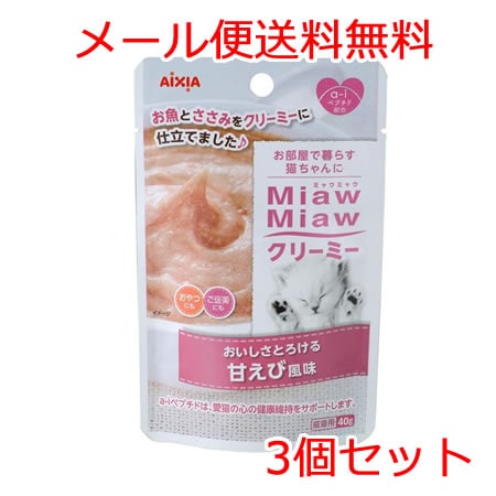 【送料無料メール便】アイシア MiawMiaw ミャウミャウクリーミー甘えび風味 40g×3個セット