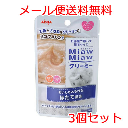 【送料無料メール便】アイシア MiawMiaw ミャウミャウクリーミーほたて風味 40g×3個セット