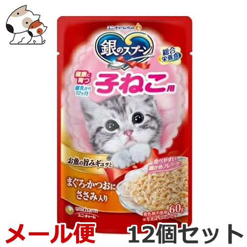 【送料無料メール便】ユニ・チャーム ペットケア 銀のスプーン パウチ 健康に育つ子猫用 まぐろ・かつおにささみ入り 60g×12個セット