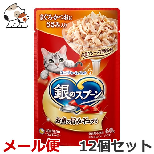 【送料無料メール便】ユニ・チャーム ペットケア 銀のスプーン パウチ まぐろ・かつおにささみ入り 60g×12個セット
