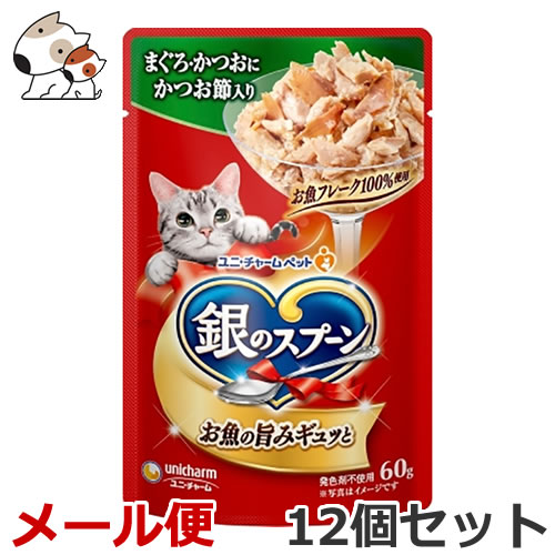 【送料無料メール便】ユニ・チャーム ペットケア 銀のスプーン パウチ まぐろ・かつおにかつお節入り 60g×12個セット