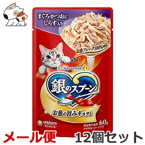 【送料無料メール便】ユニ・チャーム ペットケア 銀のスプーン パウチ まぐろ・かつおにしらす入り 60g×12個セット