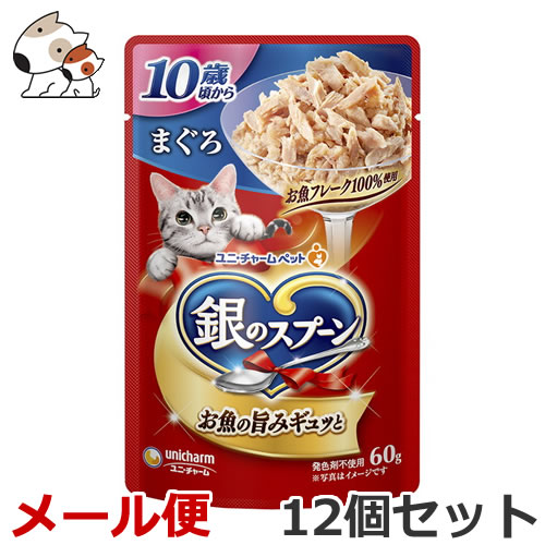 【送料無料メール便】ユニ・チャーム ペットケア 銀のスプーン パウチ 10歳頃から まぐろ 60g×12個セット