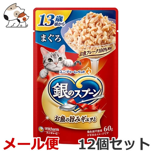 【送料無料メール便】ユニ・チャーム ペットケア 銀のスプーン パウチ 13歳頃から まぐろ 60g×12個セット