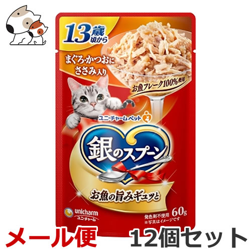 【送料無料メール便】ユニ・チャーム ペットケア 銀のスプーン パウチ 13歳頃から まぐろ・かつおにささみ入り 60g×12個セット