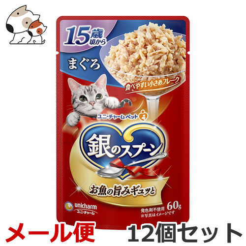 【送料無料メール便】ユニ・チャーム ペットケア 銀のスプーン パウチ 15歳頃から まぐろ 60g×12個セット