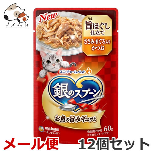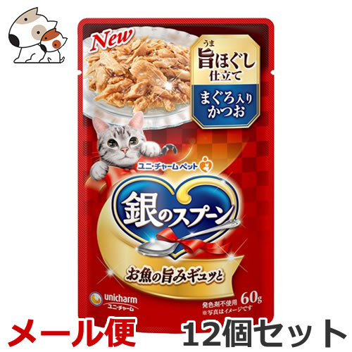 【送料無料メール便】ユニ・チャーム ペットケア 銀のスプーン パウチ ウェット 旨ほぐし仕立て まぐろ入りかつお 60g×12個セット