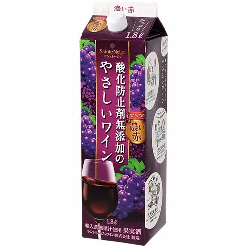 サントネージュ 酸化防止剤無添加のやさしいワイン 濃い赤 1800ml 紙パック 赤ワイン ミディアムボディ やや甘口 (4582600200166)