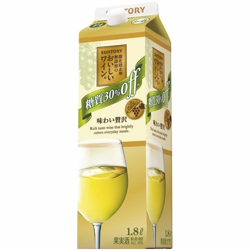 サントリー 酸化防止剤無添加のおいしいワイン。糖質30%オフ 白 1800ml 1.8L 紙パック 白ワイン 辛口 (4901777367692)