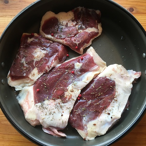 アイガモ肉を一羽分、おおよそ600g前後を骨なし加工で胸肉2枚、モモ肉2枚、ササミ2枚を冷凍真空パックにしました。スモークダック、ローストダック、グリル、鴨南蛮に最適です。パーティーやお祝いに。ササミは生のまま刺身にしてわさび醤油でお召し上がりください。